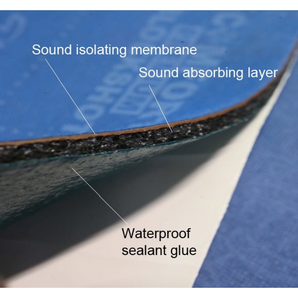 Jis susideda iš 3 sluoksnių: membranos su didelio tankio akustine mastika, garsą sugeriančios medžiagos ir klijų, sandariklis.